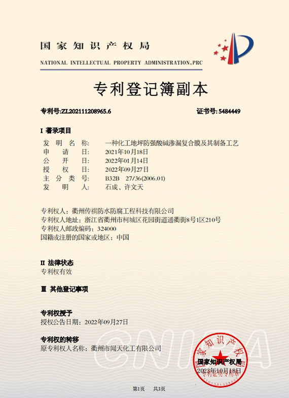 衢州傳祺新材料科技有限公司是衢州市聞天化工有限公司的下屬企業(yè);衢州市聞天化工有限公司成立于2003年,是國(guó)內(nèi)最早研發(fā)、生產(chǎn)氟碳涂料的企業(yè)之一。衢州傳祺新材料科技有限公司成立于2017年,公司專注于高分子氟材料的開(kāi)發(fā)和含氟材料在防腐、防水領(lǐng)域的應(yīng)用。經(jīng)過(guò)6年的不懈努力,已獲得了化工和建筑領(lǐng)域六項(xiàng)國(guó)家發(fā)明專利授權(quán)和兩項(xiàng)新產(chǎn)品科技成果獎(jiǎng),參與了中國(guó)建筑材料流通協(xié)會(huì)《房屋修繕?lè)浪こ桃?guī)范》標(biāo)準(zhǔn)的編制工作,中建協(xié)涂裝委員會(huì)浙西工作站設(shè)立在我公司。